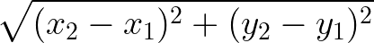 This is the familiar distance formula. Given a pair of points (x1, y1) and (x2, y2), the distance between them is given by the following expression: