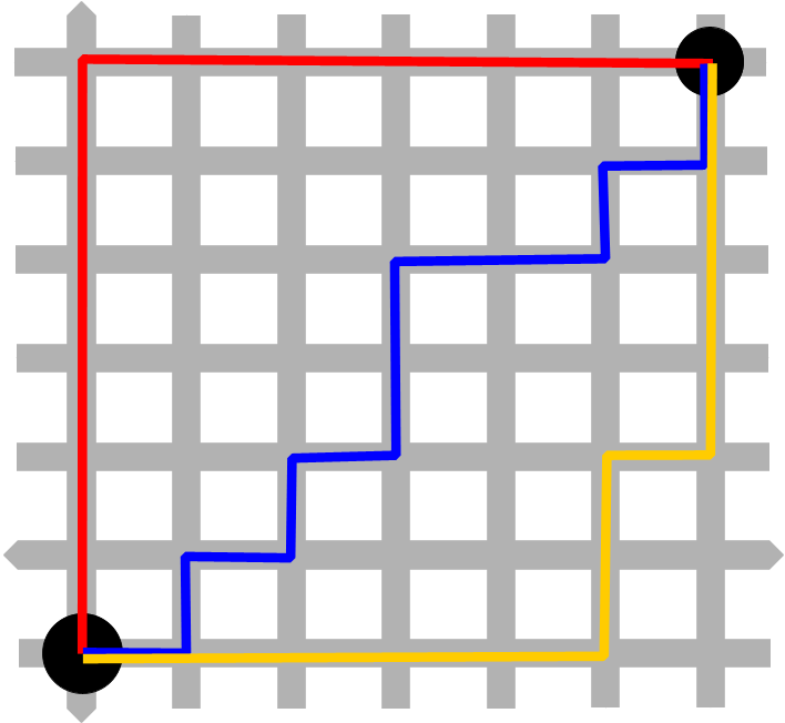 More formally, it is the sum of the horizontal and vertical distances between two points. We can think of this as following a zig-zagging path or, equivalently, as going straight up and over.
