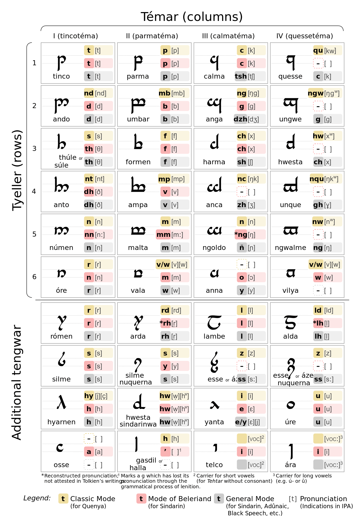 Like the Roman alphabet, Tengwar is used for multiple languages, including Quenya, Sindarin, and the Black Speech of Mordor. The script takes on a “mode” (which determines how the letters are pronounced) for different languages.